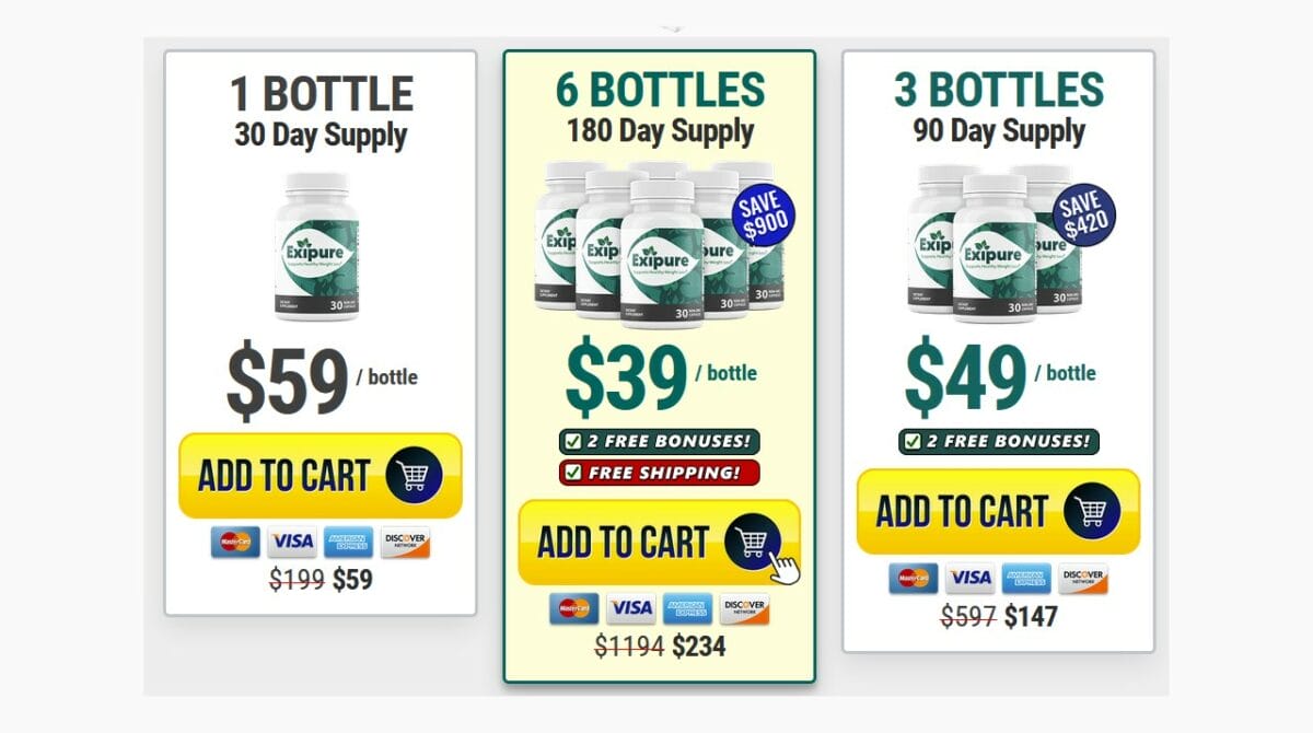 Un flacon d’Exipure coûte 59 € seulement, et il contient 30 pilules pour un mois. Trois bouteilles d’Exipure coûtent 147 euros. Six bouteilles d’Exipure coûtent 234 €. Toutes les options d’achat d’Exipure sont couvertes par une garantie de remboursement de 180 jours, et vous êtes libre de retourner votre achat dans les 180 jours suivant la date d’achat si vous n’êtes pas satisfait du produit.